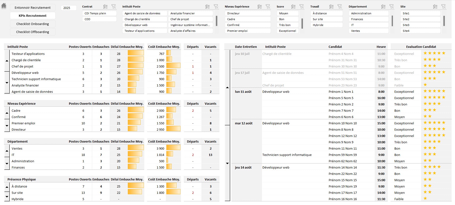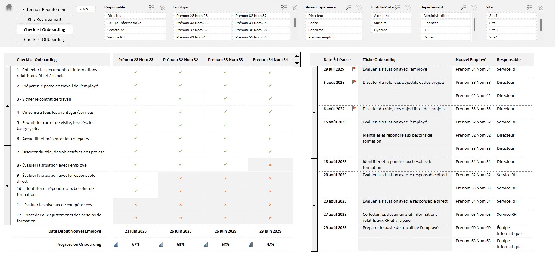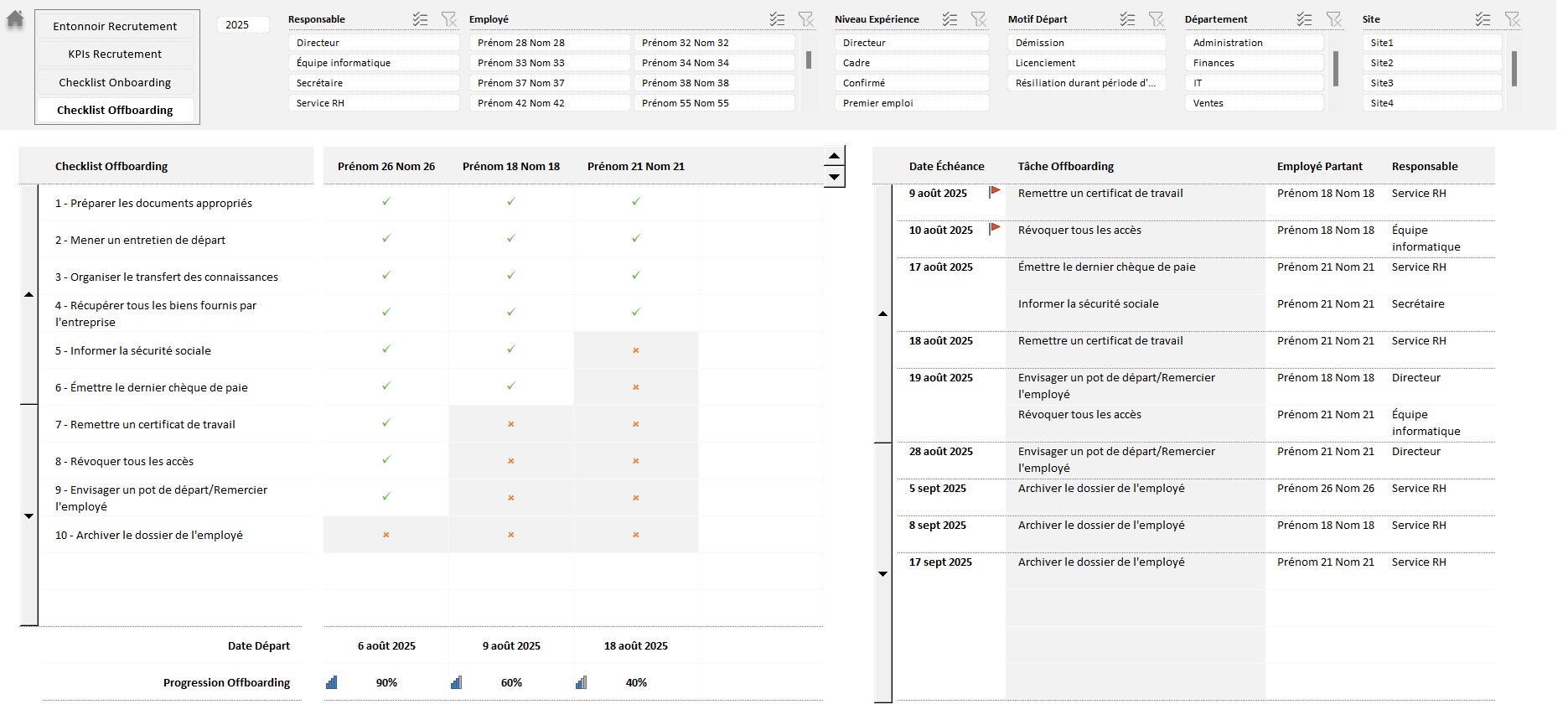 Suivi des Recrutements, Checklist Onboarding, Offboarding
