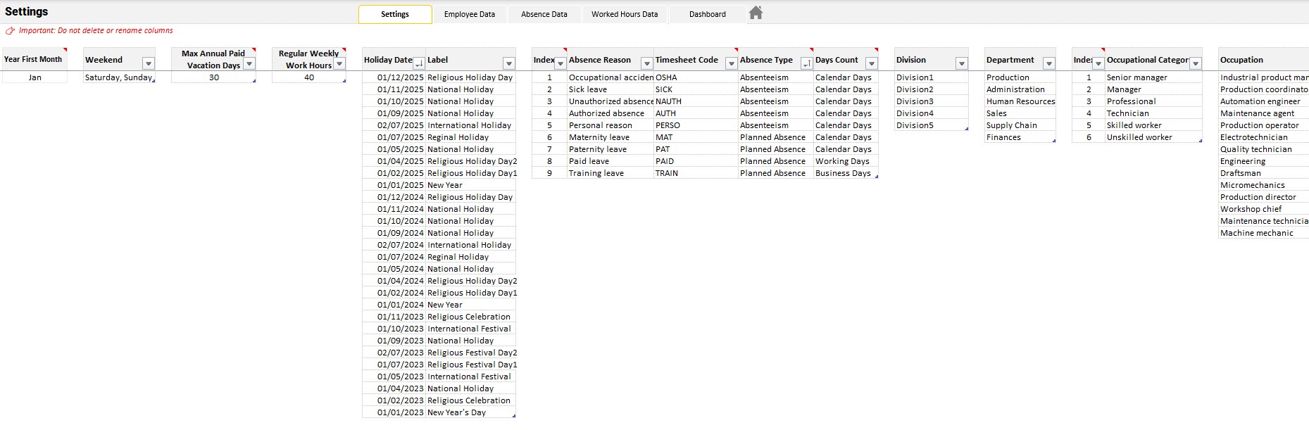 Employee Absence Matrix